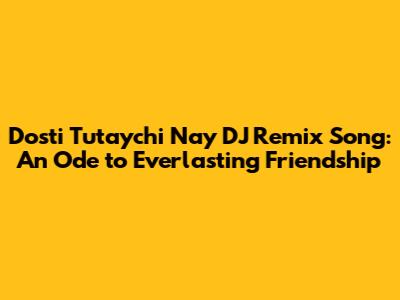 Friendship, a bond that transcends time and distance, finds its rhythm in the Dosti Tutaychi Nay DJ Remix song. This isn't just a track; it's an anthem celebrating the unwavering spirit of camaraderie. For those unfamiliar, "Dosti Tutaychi Nay" translates to "Friendship Will Never Break" in Marathi, setting the tone for a powerful message of unity and loyalty. The DJ remix version amplifies this message, blending traditional sentiments with modern beats, creating a vibrant and energetic tribute to the beautiful connection we share with our friends. Guys, let's dive into why this remix resonates so deeply and how it captures the essence of lasting friendships.