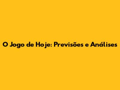 O Jogo De Hoje: Previsões E Análises