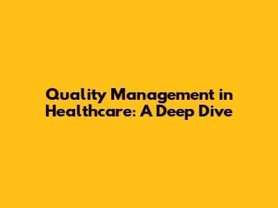 Quality Management In Healthcare: A Deep Dive